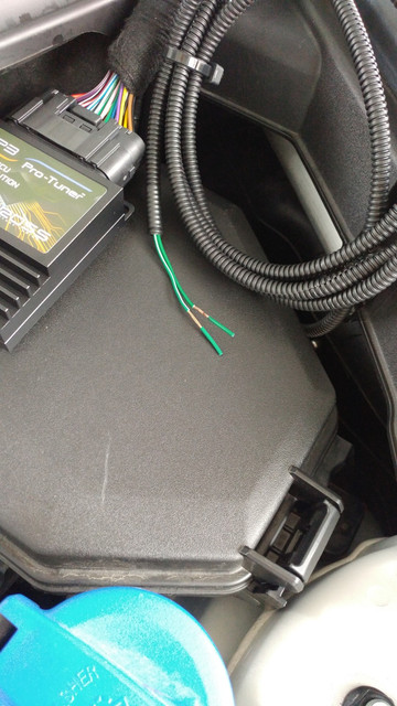 You’ll notice I opted out of wiring in the speed limiter removal. That’s far more “semi-permanent” in nature and I think the less obvious things under the hood, the easier this will be to deal with when it comes to stealership visits. Also, you’ll want to wrap these wires up to make sure they don’t touch each other if you opt out like I did. They apparently touched on mine and my engine threw a rod through the hood. Just kidding. But definitely wrap the two wires up separately.